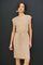 Beige Waffle Knit Sash Tie Short Sleeve Dress