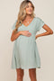 A solid maternity plus maxi dress featuring functioning front buttons, a collar, two front pockets, cuffed short dolman sleeves, and a hi-low rounded hemline.
