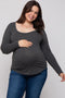 Black Contrast Smocked Balloon Sleeve Maternity Midi Dress