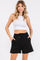 A pair of solid hued shorts featuring a drawstring waist and side pockets.