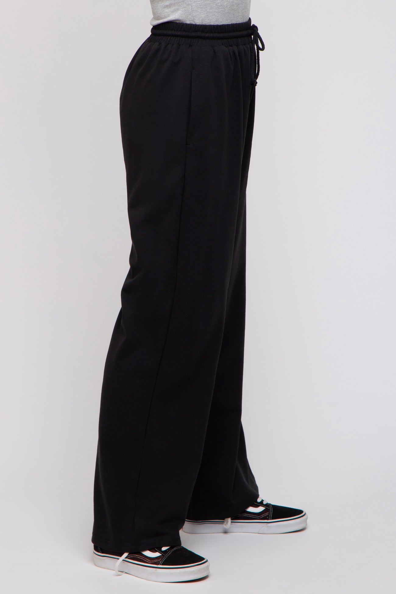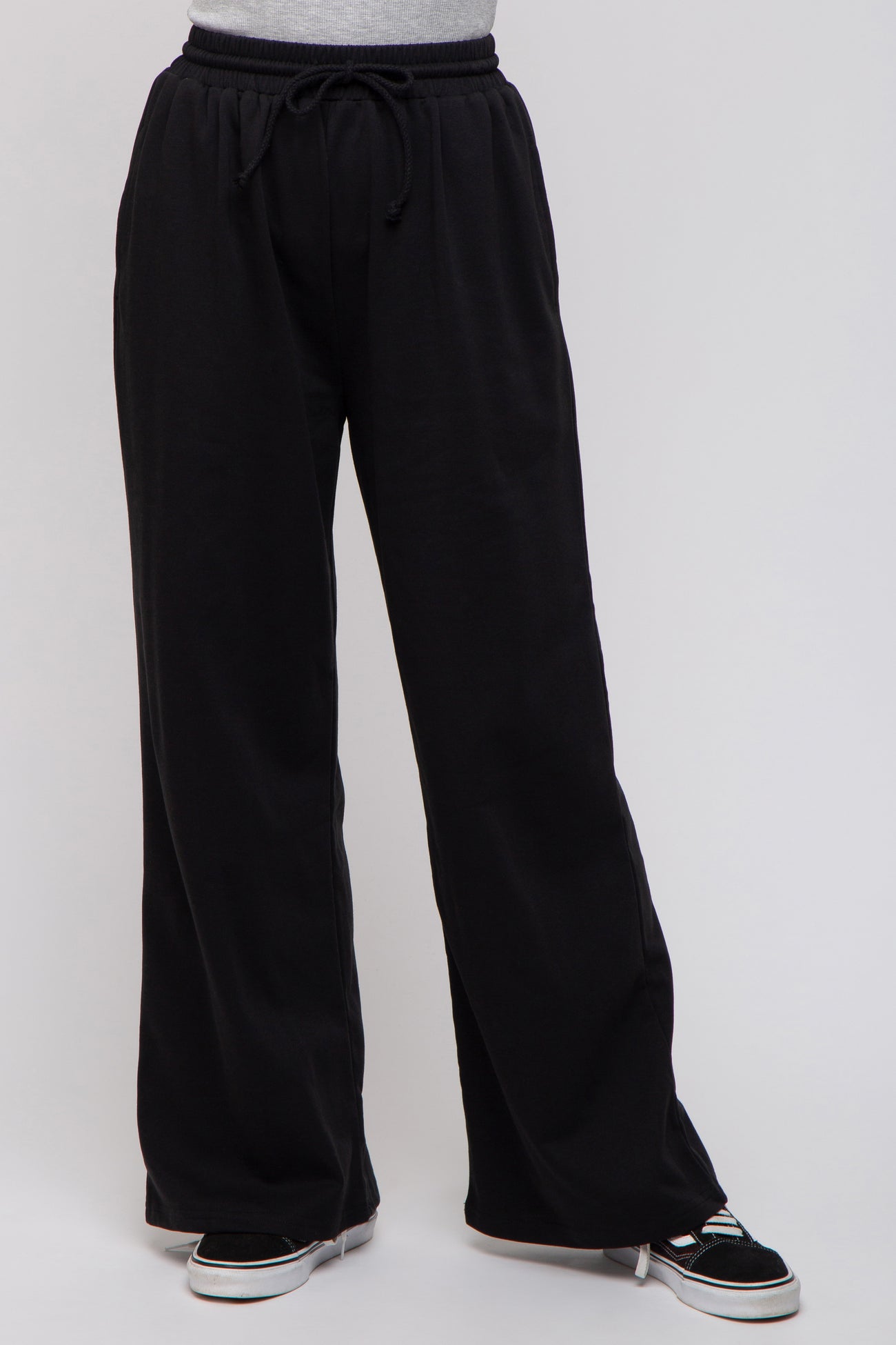 A pair of knit pants featuring an elastic waistband, an adjustable drawstring and side pockets.