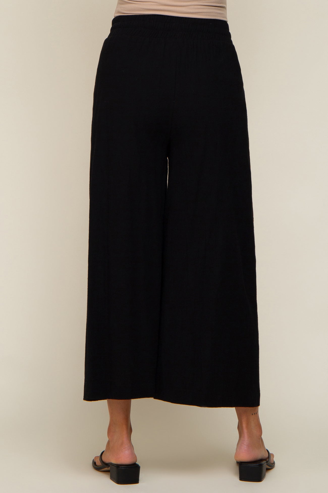 Details A solid pair of maternity wide leg pants with an elastic waistband and adjustable drawstring. Content + Care