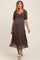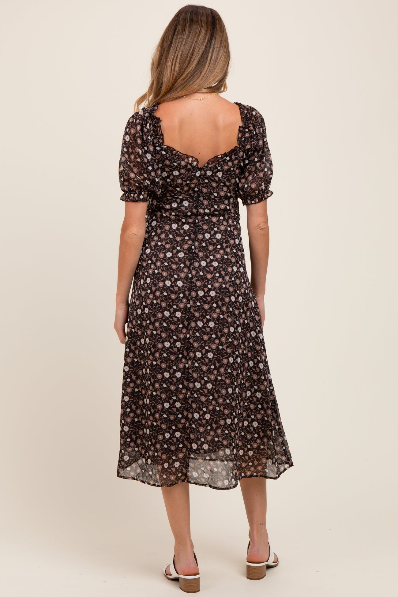 Black Floral Chiffon Sweetheart Puff Sleeve Maternity Midi Dress