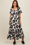 Black Floral Satin Front Tie Sleeveless Maternity Midi Dress