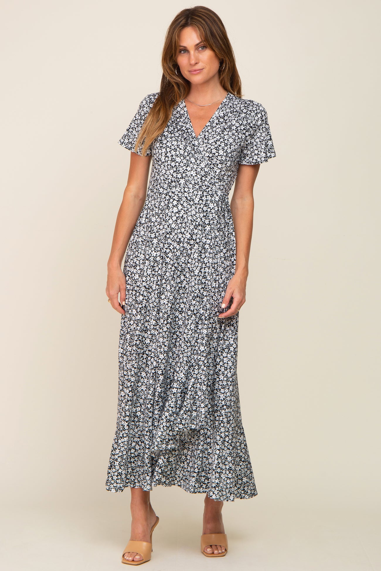 Details A soft knit maxi dress featuring short sleeves, a v-neck wrap neckline, an adjustable inside and side tie, and a flounce hem. Content + Care