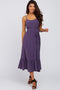 A floral print mid dress featuring a smocked bodice, short puff sleeves, and a squared neckline with ruffle accents.