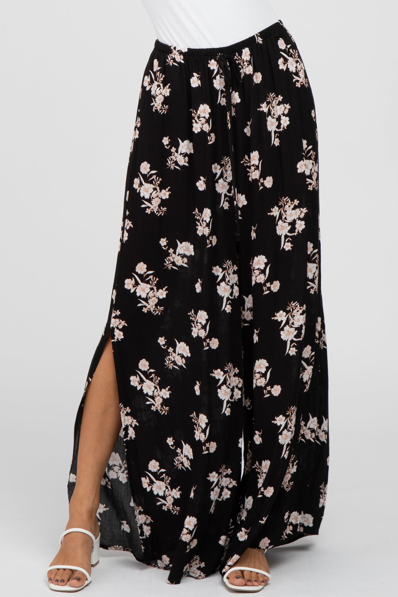 Black Floral Split Hem Pants