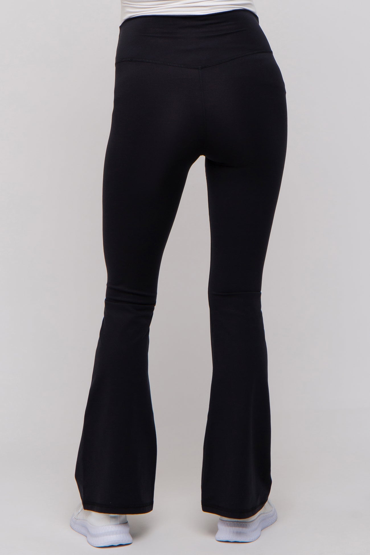 Details A pair of maternity leggings featuring a wide waistband, front ruching and a bootcut hem. Content + Care