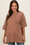 A light weight double layered gauze maternity top. Features front functioning buttons, a collar, and half-length dolman sleeves.