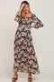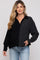A half stripe maternity top featuring a collared neckline, long sleeves, a button front and a rounded hem.