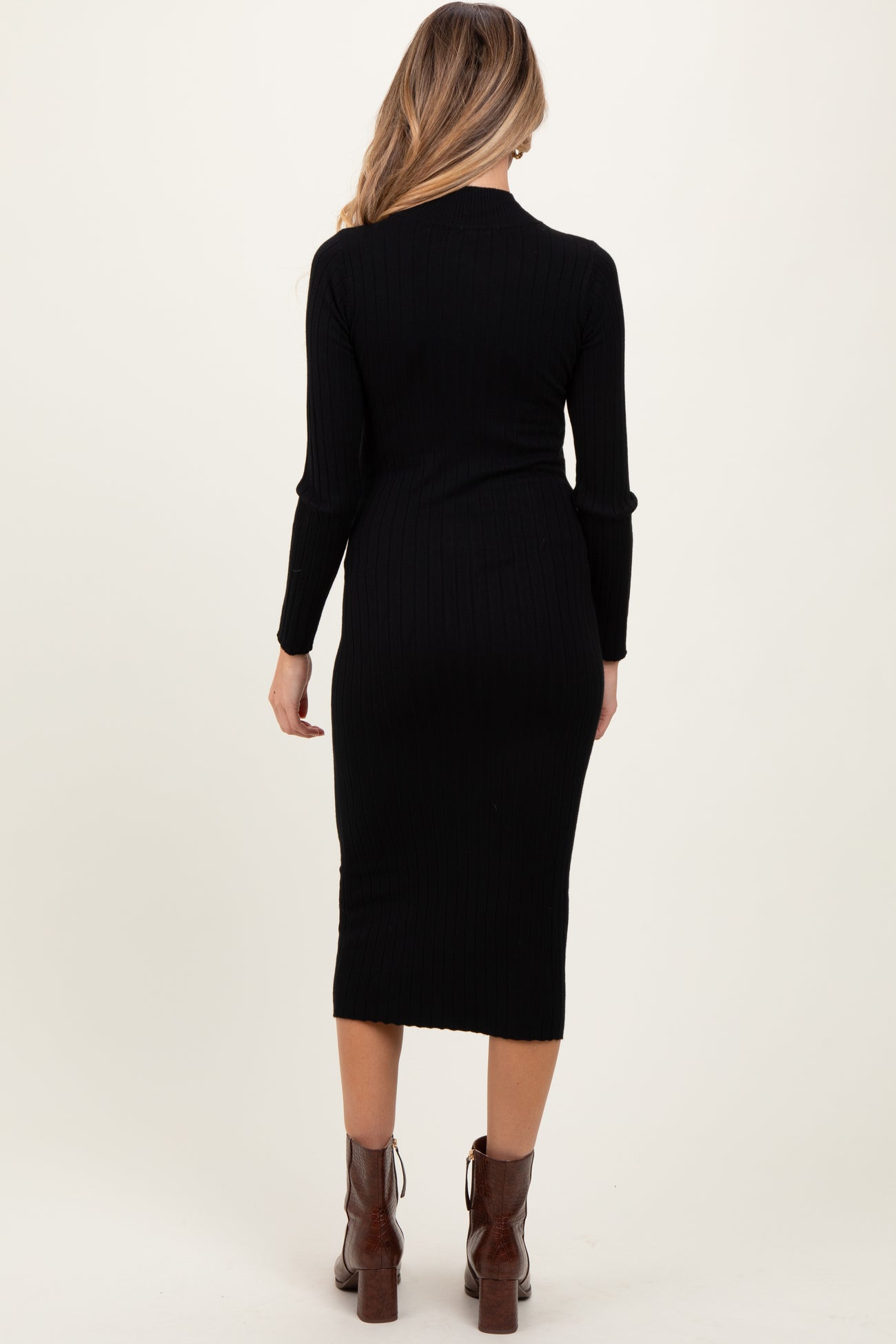 Black Mock Neck Ribbed Maternity Sweater Dress