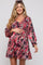 A paisley print maternity dress featuring a smocked elastic bodice, a v-neckline, long puff sleeves, a ruffle hem and double lining.