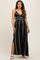 A patterned maternity dress with adjustable straps, v-neckline, front knot twist, and side slits.