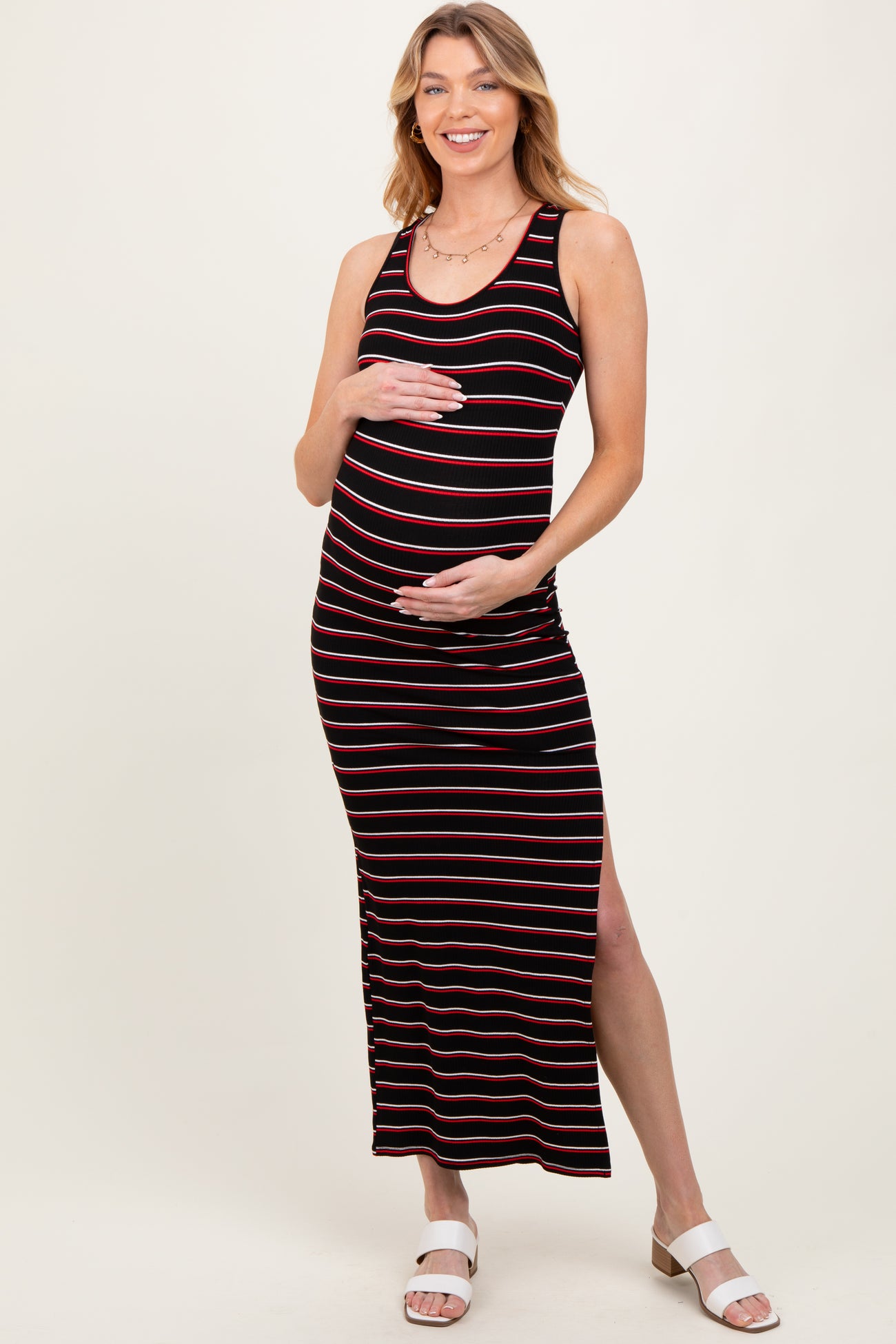 Black Red Striped Side Slit Maternity Maxi Dress