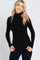 A ribbed fitted top featuring long sleeves and a mock neckline.
