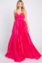 A ribbed knit gown featuring a colorblock off shoulder neckline and long sleeves.