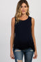 A soft ribbed maternity knit top featuring a crew neckline, short sleeves and a rounded hem.