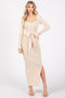 A solid terry cloth jumpsuit. Features a ruffle accent v-neckline, side pockets, and wide pant legs.
