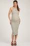 A solid terry cloth maternity jumpsuit. Features a ruffle accent v-neckline, side pockets, and wide pant legs.