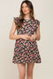 A shift dress with a rounded neckline and small side slit.