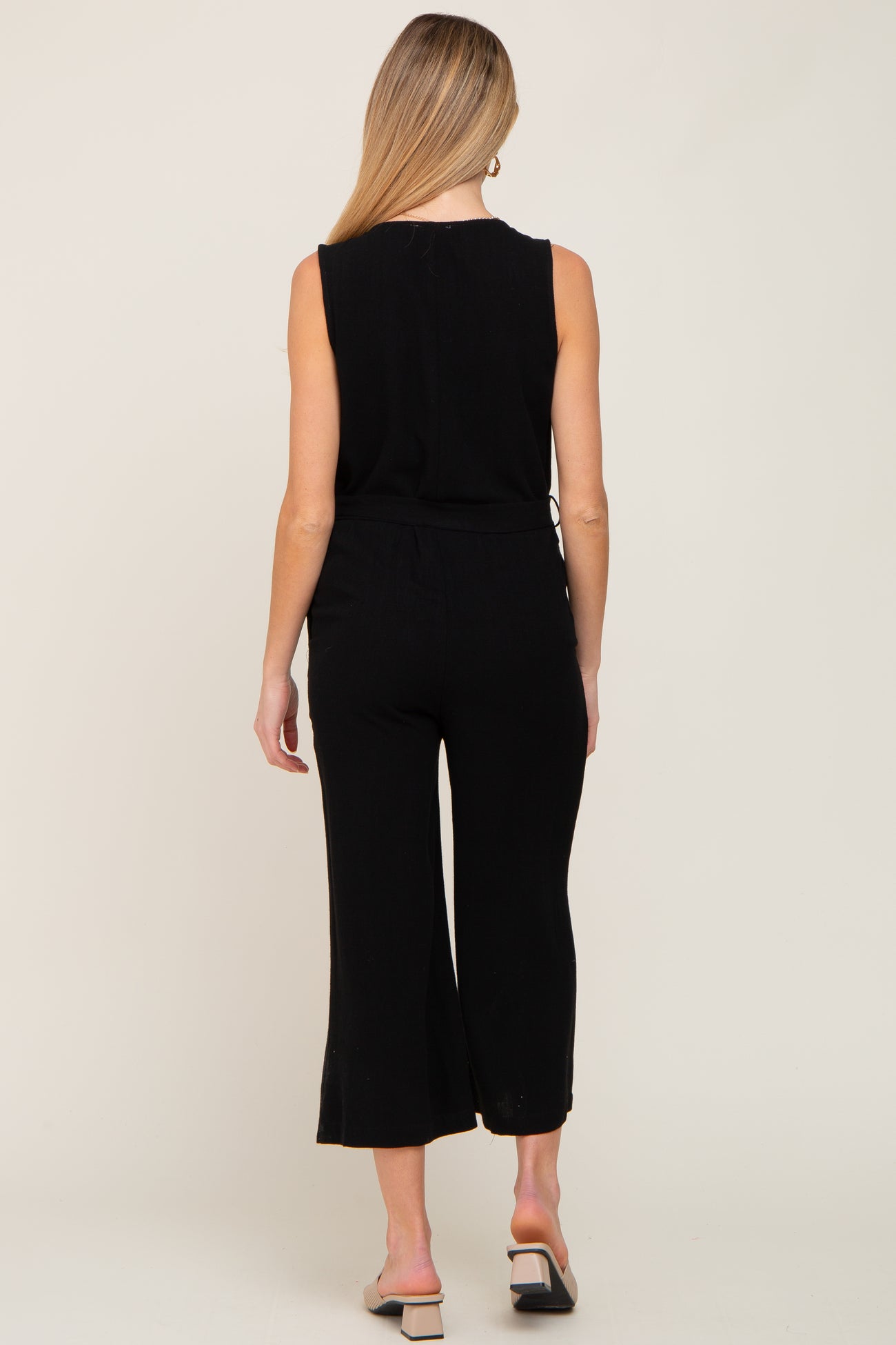 Black Sleeveless Button Front Maternity Cropped Jumpsuit