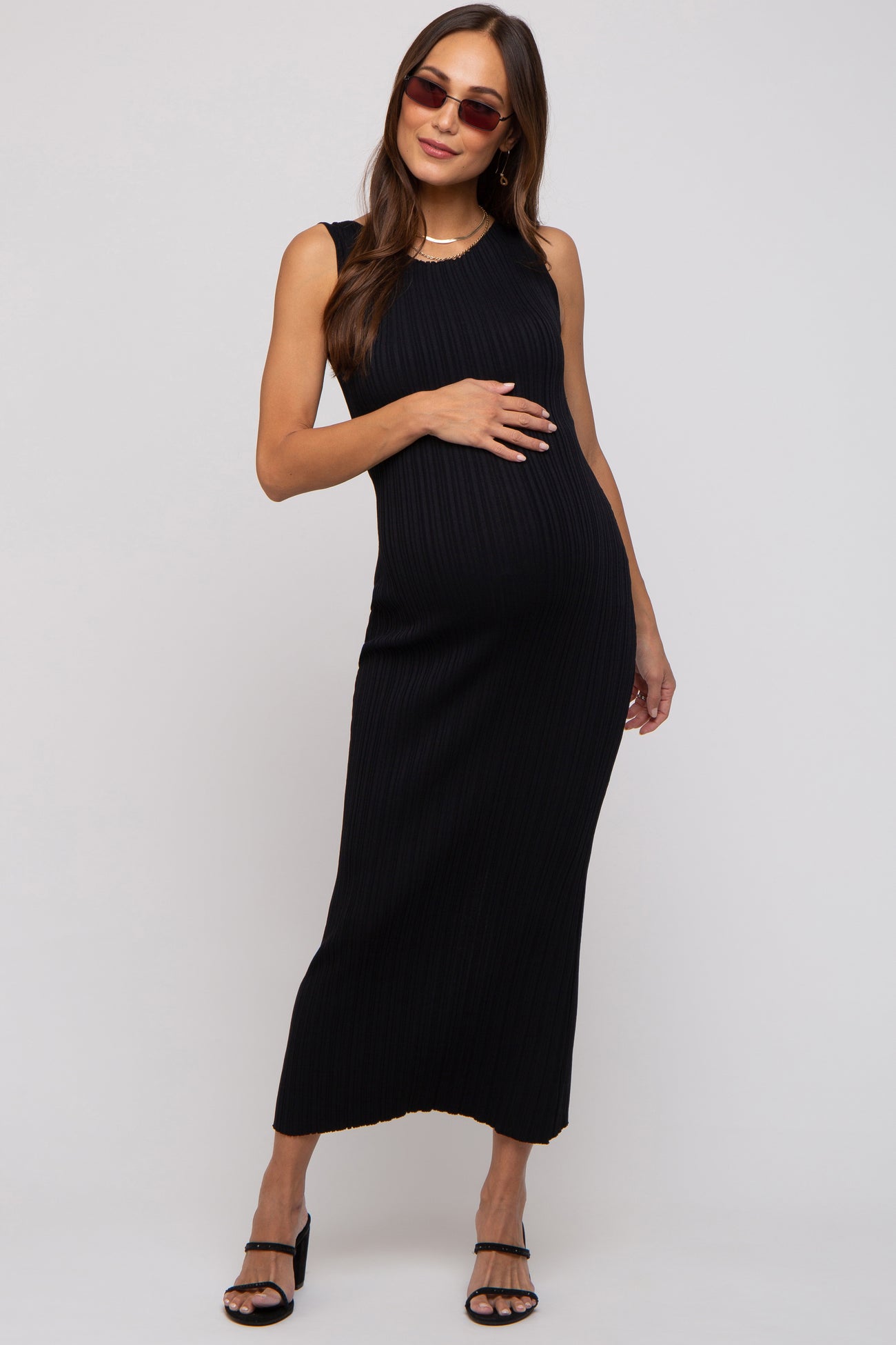 Black Sleeveless Ribbed Maternity Maxi Dress