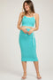 A sleeveless ribbed maternity maxi dress featuring adjustable cami straps and a rounded neckline.