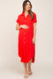A sleeveless tulle maternity midi dress featuring a tiered skirt, a wrap v-neckline and self-tie straps. Double lined.