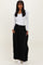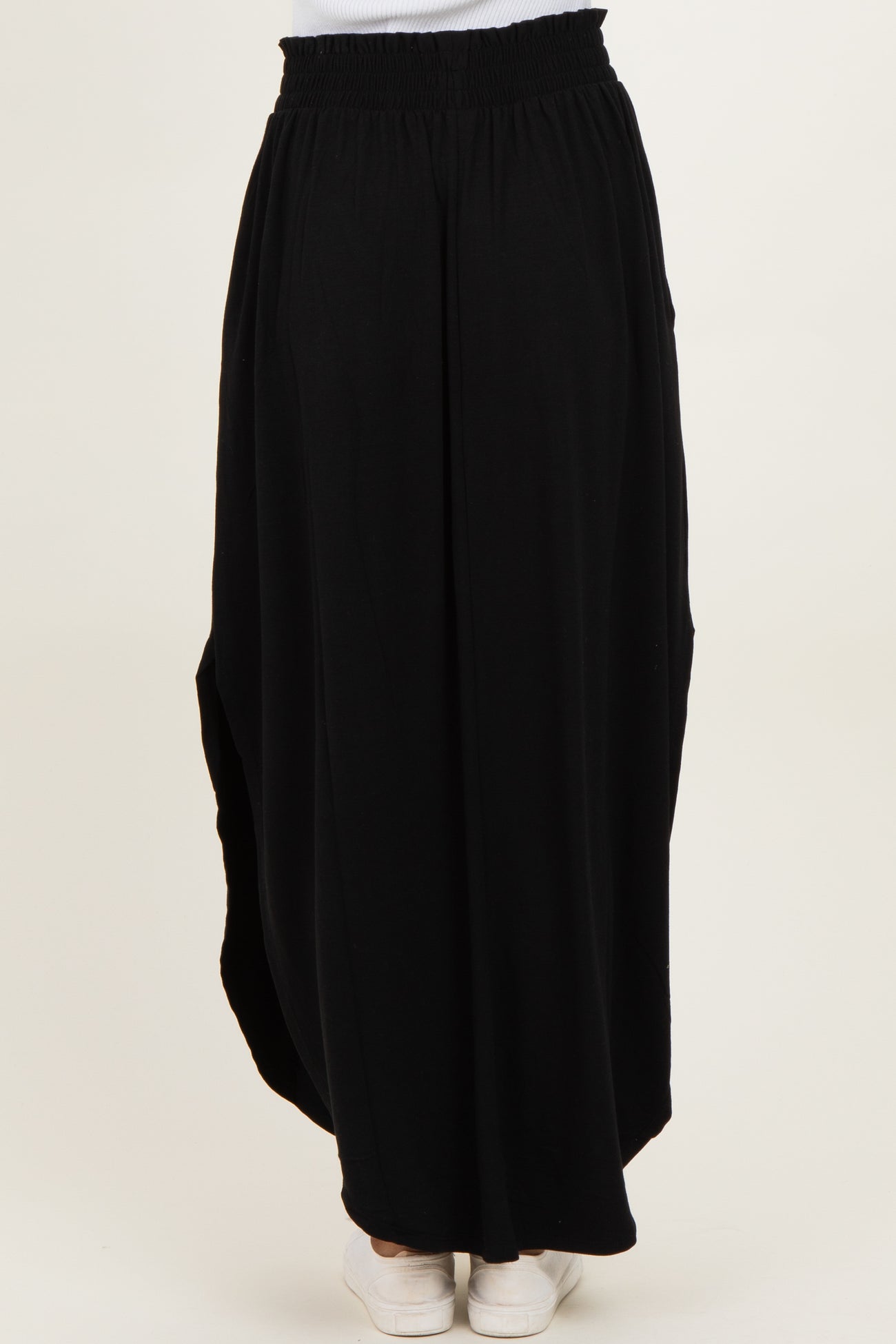 A solid maxi skirt with a smocked elastic waistband, rounded hem and side pockets.