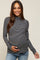 A striped rib knit maternity top with a mock neckline and long sleeves.