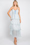 A striped textured chiffon maternity plus size midi dress featuring a square neckline, short puff sleeves, a s mocked elastic back side pockets and double lining.