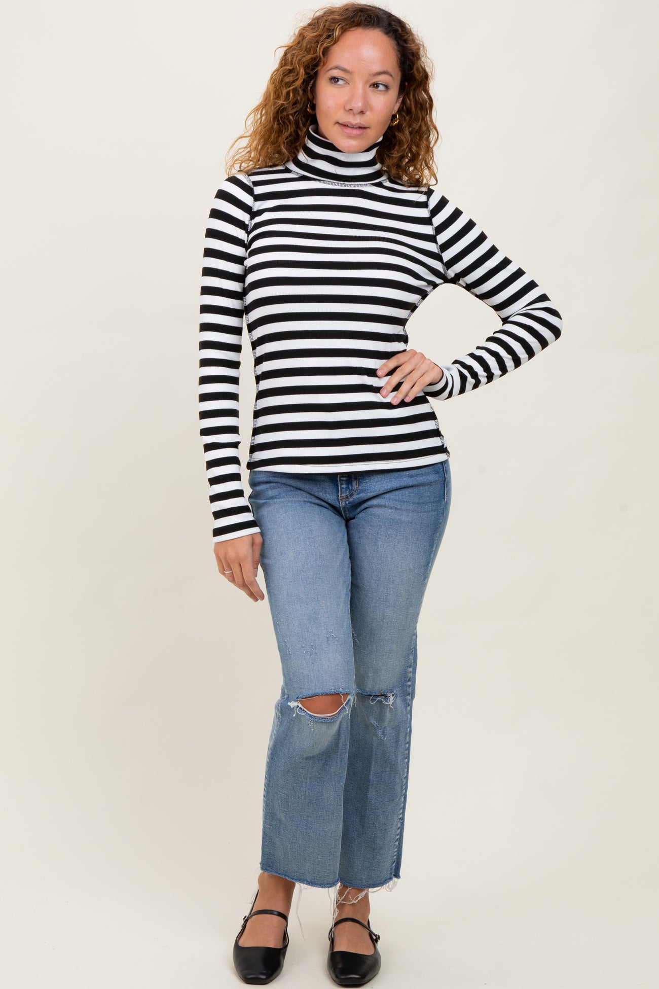 Black Striped Turtleneck Long Sleeve Top