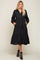 A solid long sleeve button down maxi dress in a tiered style. Pocketed.