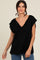 Black Two Tone Split V-Neck Dolman Short Sleeve Top