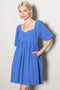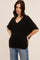 A crepe knit top featuring a v-neckline and short dolman sleeves.