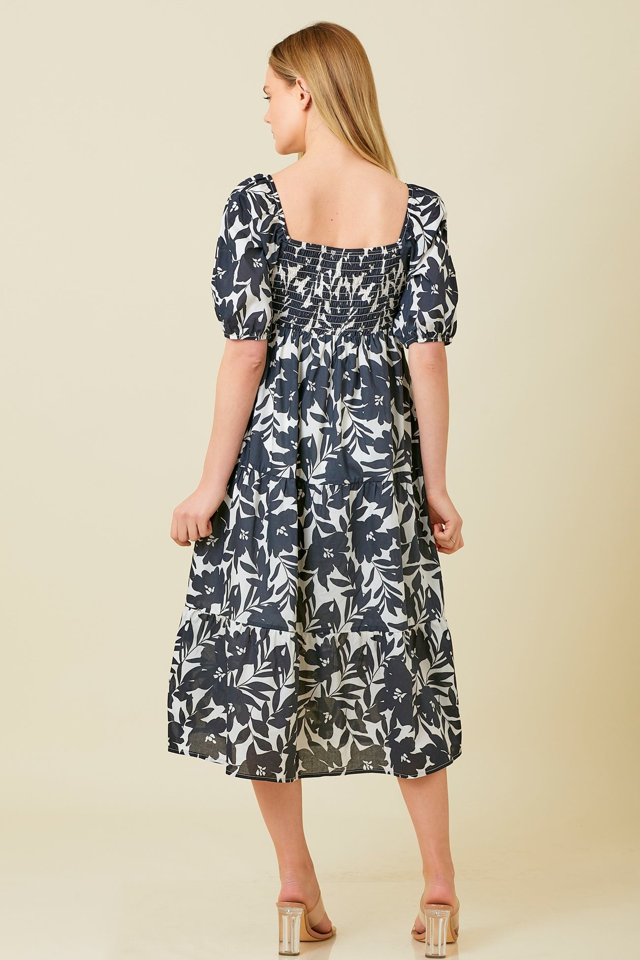 Black White Puff Sleeve Midi Dress