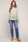 A pair of medium washed maternity jeans with an elastic bellyband, 5 pockets, front distressed accents, and a rolled hem. Hem may be unrolled.
