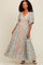 Blue Floral Border Print Flutter Sleeve Maxi Dress