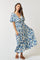 Blue Floral Deep V-Neck Ruffle Midi Dress