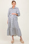 Blue Floral Printed Puff Sleeve Maternity Midi Dress