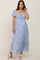 Blue Floral Sweetheart Drawstring Neck Short Sleeve Maternity Midi Dress