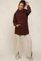A knit fitted maternity dress featuring a mock neckline and shirt fitted sleeves.