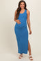 Blue Off Shoulder Ruffle Hi-Low Maternity Maxi Dress