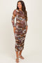 Blue Printed Button Accent Puff Sleeve Maternity Midi Dress
