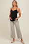 A multicolored striped maternity midi dress. Features button front detail and ruffle neckline. Includes thin adjustable straps, smocked back, two side pockets and a lined skirt.