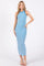 Blue Ribbed Knit Sleeveless Fitted Midi Dress