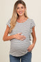 Blue Ribbed Raw Hem Maternity Short Sleeve Top