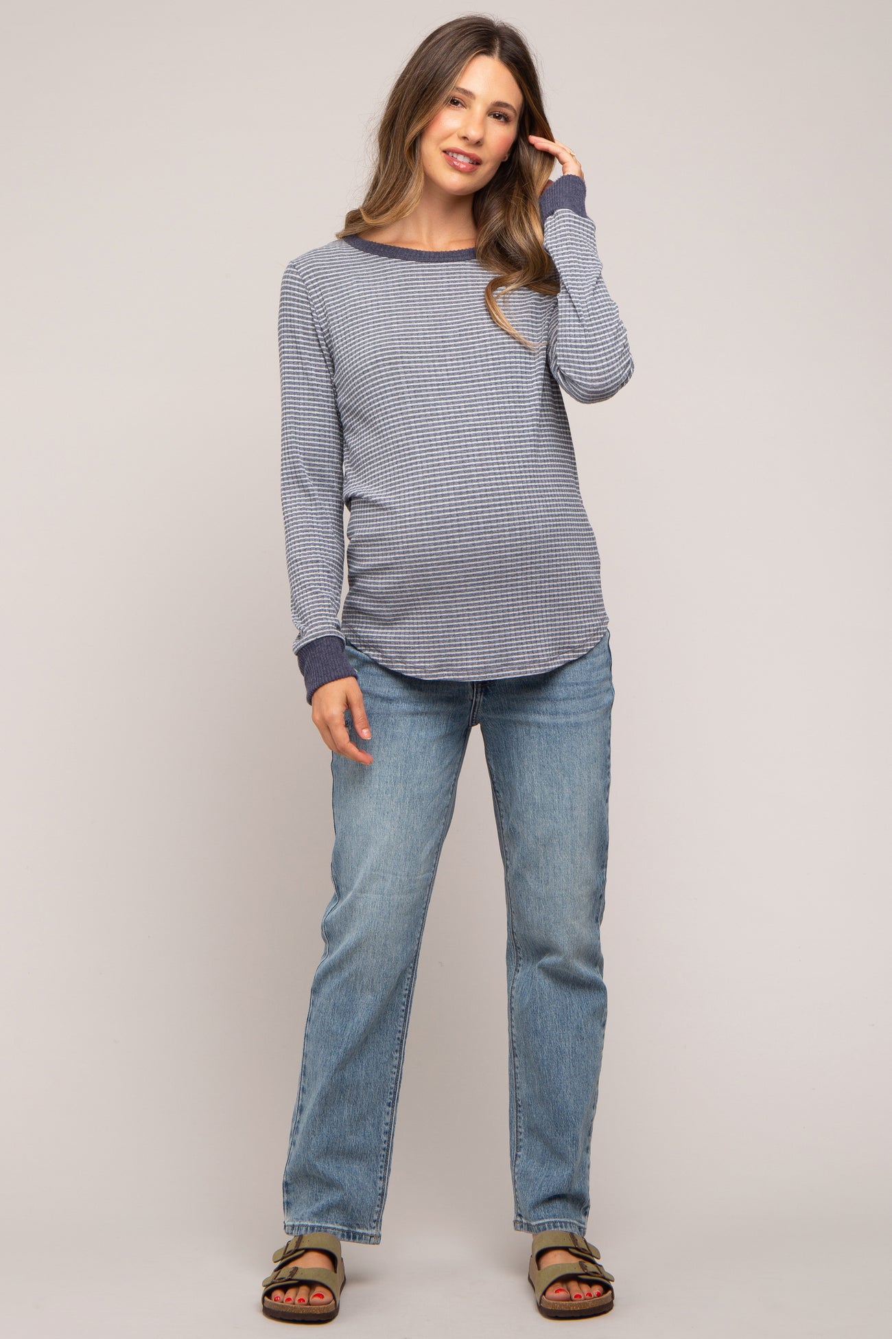 Blue Slightly Distressed Straight Leg Maternity Jeans