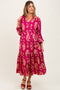Blue Smocked Waist Rounded Hem Maternity Midi Skirt