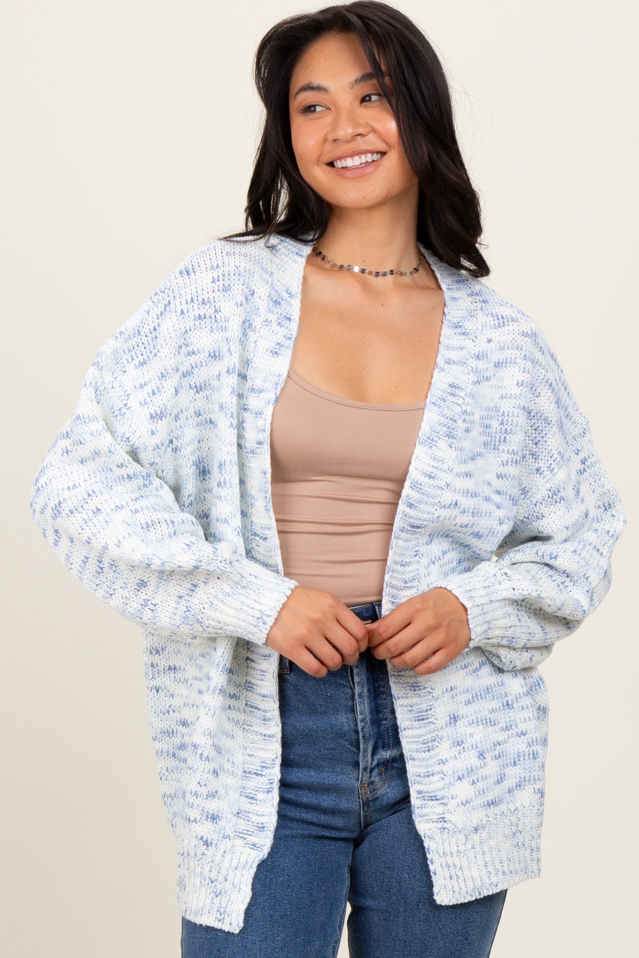Blue Speckled Chunky Knit Oversized Maternity Cardigan